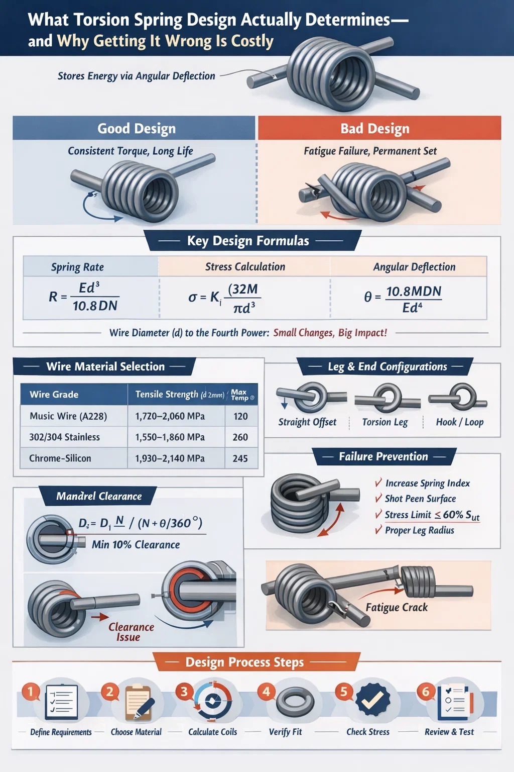 Die Konstruktion von Torsionsfedern basiert auf einer Reihe gut etablierter mechanischer Gleichungen. Sie zu verstehen ist nicht optional – sie bestimmen, ob Ihre Feder ihre Lebensdauer übersteht oder in den ersten paar tausend Zyklen versagt.