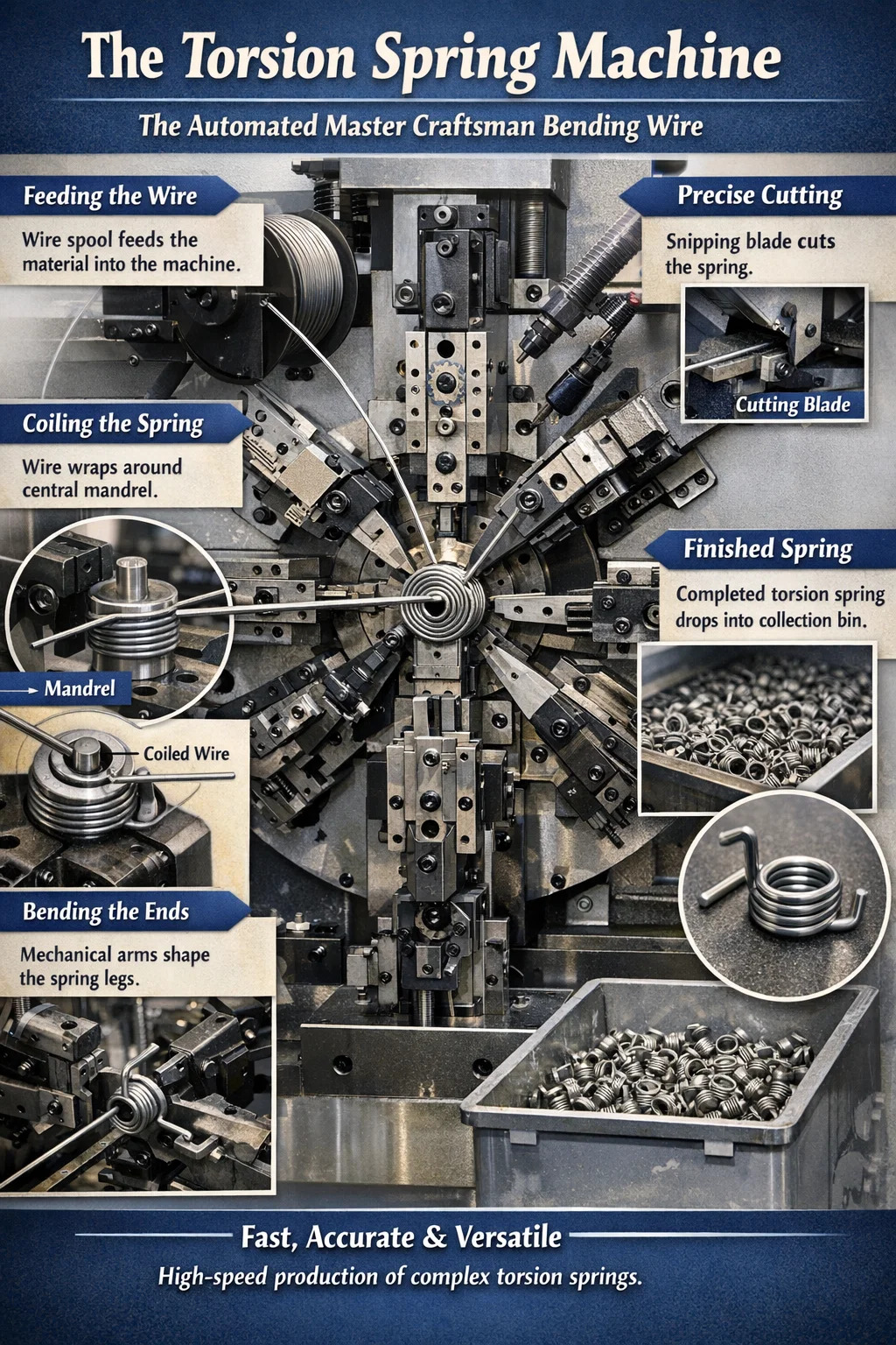 Einfach ausgedrückt ist eine Torsionsfedermaschine eine Maschine, die speziell für die Herstellung von „Torsionsfedern“ entwickelt wurde.