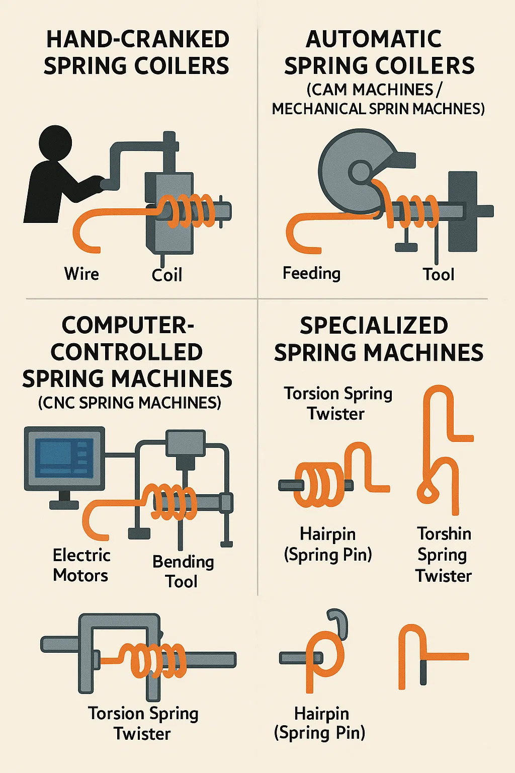 Hier ist eine Aufschlüsselung der Maschinen, die zur Herstellung von Federn verwendet werden, im Klartext: